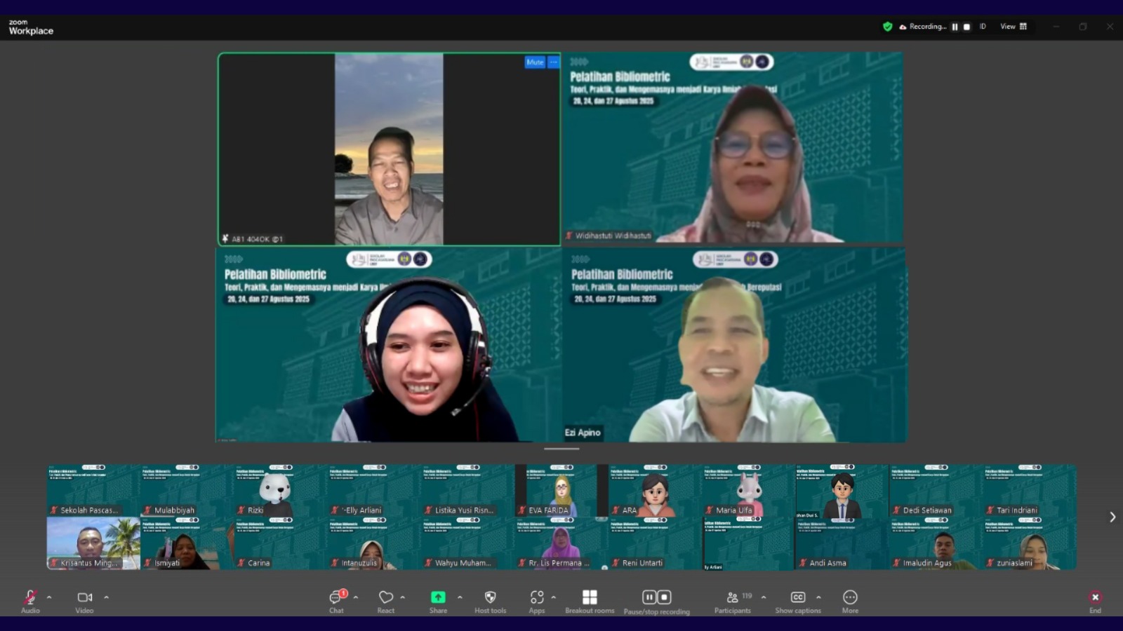 Pelatihan yang digelar dalam tiga seri (20, 24, dan 27 Agustus 2025) ini berlangsung interaktif. Antusiasme peserta tampak dari banyaknya pertanyaan, diskusi, serta refleksi pengalaman dalam memanfaatkan analisis bibliometrika. Tidak hanya memperoleh pemahaman teoritis, peserta juga mengikuti praktik ringan dengan studi kasus publikasi yang berhasil terbit di jurnal internasional.