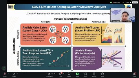 Melalui webinar ini, peserta mendapatkan wawasan komprehensif mengenai pemanfaatan Latent Class Analysis (LCA) dan Latent Profile Analysis (LPA) sebagai pendekatan analitis untuk mendiagnosis kesiapan belajar peserta didik secara lebih akurat dan berbasis data. Kegiatan ini sekaligus memperkuat peran Lab. PEP SPs UNY sebagai pusat pengembangan keilmuan dan praktik evaluasi pendidikan yang adaptif terhadap perkembangan riset mutakhir. (LS)